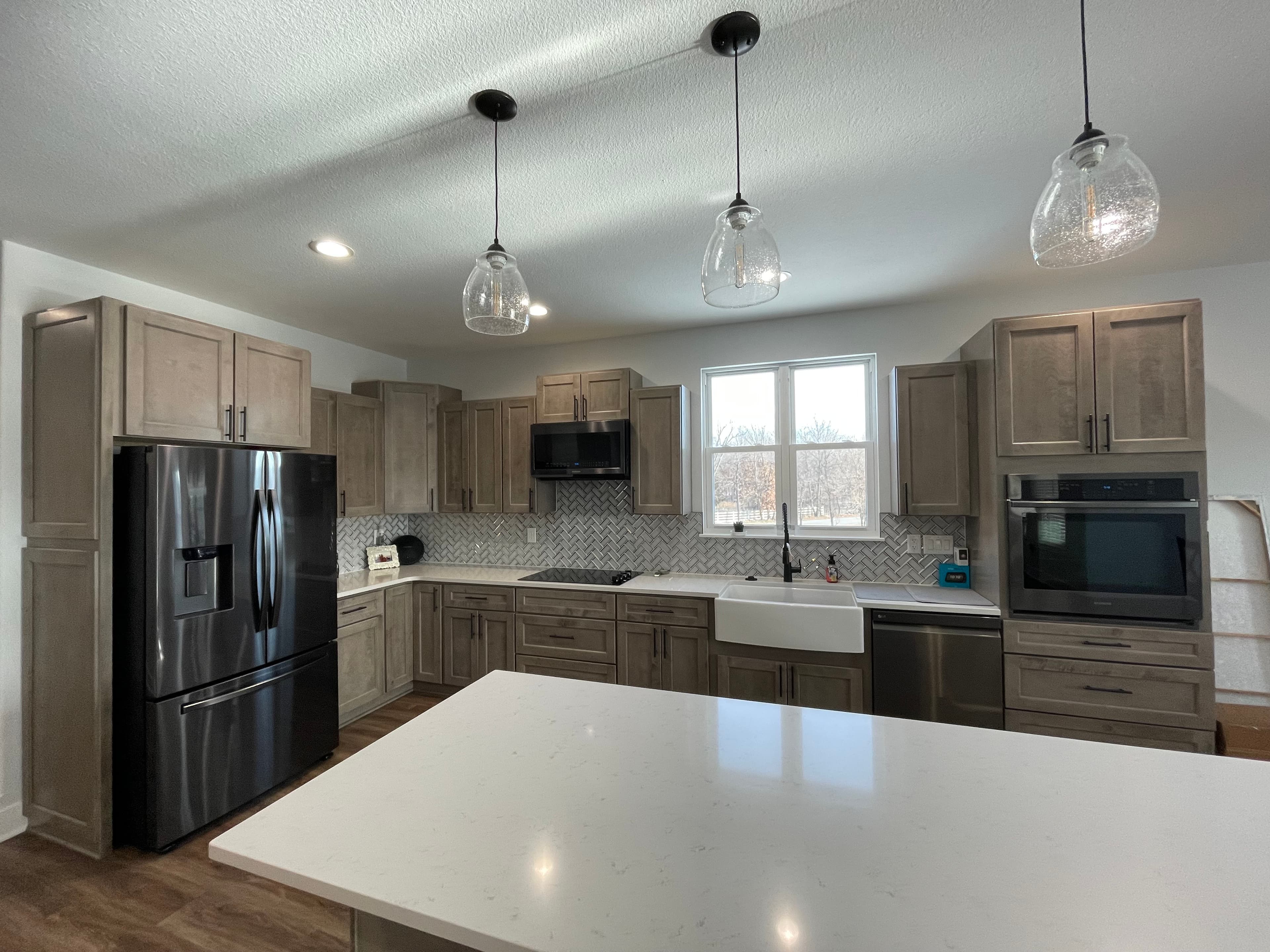 A massive, brand-new modern home offering approximately 4,600 sq ft of living space, designed for contemporary comfort and flexible living. This residence features a walkout basement and a generous upper deck, providing seamless indoor-outdoor living and great entertaining options. An optional custom tornado shelter room adds peace of mind. The open floor plan is flooded with natural light from numerous windows, creating a bright, welcoming atmosphere throughout.